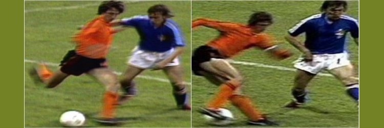 In the 24th minute, Cruyff had control of the ball in an attacking position.  He was facing his own goal and was being marked tightly by the Swedish defender, Jon Olsson.  Cruyff feigned to pass before dragging the ball behind his standing leg.  He turned 180 degrees and accelerated away.  Leaving Olsson wondering what on earth had just happened.