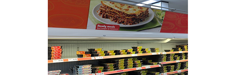 Use them to signpost the fixture.  This could be visual signposting.  For instance, in Ready Meals Sainsbury’s use visuals of lead products to signpost each sub category.  Sausage & Mash for British, Chicken Tikka Masala for Indian, Lasagne for Italian.  This helps shoppers navigate in aisle, but also increases the relevance of the sub category.  More people eat lasagne than any other Italian ready meal.