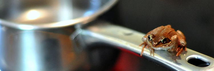 If you suddenly put a frog into a pot of boiling water, it will jump straight out. But, if you put a frog in a pot of tepid water, then slowly bring the water to the boil, the frog will not sense the danger and will be slowly cooked to death.